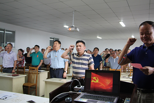 “我志愿加入中國共產(chǎn)黨,擁護(hù)黨的綱領(lǐng)……”為慶祝中國共產(chǎn)黨95歲生日,弘揚(yáng)海陸精神,7月1日下午,海陸重工在11號(hào)樓會(huì)議室舉行了集中宣誓活動(dòng)。