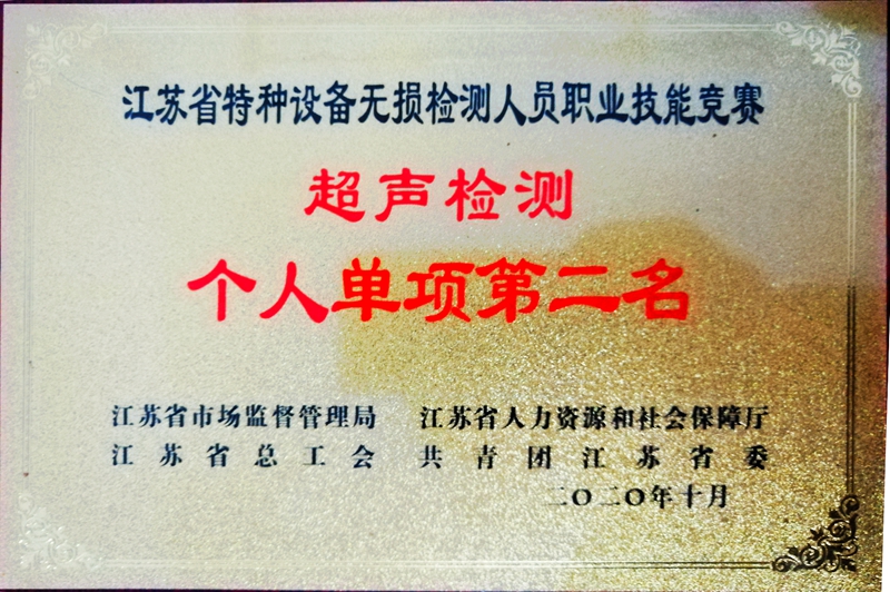 10月27日下午,由江蘇省市場監(jiān)督管理局、省人力資源和社會(huì)保障廳、省總工會(huì)、共青團(tuán)江蘇省委聯(lián)合主辦的江蘇省首屆特種設(shè)備無損檢測人員職業(yè)技能競賽在南京開賽。本次比賽,共有來自全省13支代表隊(duì)的13名領(lǐng)隊(duì)、13名教練、65名優(yōu)秀選手參加。最終,我公司無損探傷檢測專家趙建必、張?zhí)?、劉闖三人代表蘇州市出戰(zhàn)。通過為期三天的角逐,一路過關(guān)斬將,最終為蘇州市一舉奪得江蘇省特種設(shè)備無損檢測人員職業(yè)技能競賽二等獎(jiǎng);我公司劉闖奪得超聲檢測個(gè)人單項(xiàng)二等獎(jiǎng)。