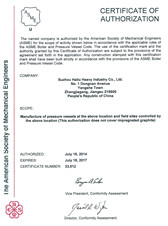 Hailu manufacturing and international standards, with qualified Habitat counterparts in the first column. The company currently holds A-class boiler, A1, A2, A3 grade pressure vessel manufacturing, design license, the United States ASME "S, U" Stamp Certificate of Authorization and China CCS, the British LR, Germany GL, Norway DNV, France BV at home and abroad Classification Society factory authorized certificate.